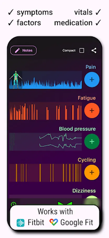 - track unlimited vitals (eg blood pressure, menstrual cycle)