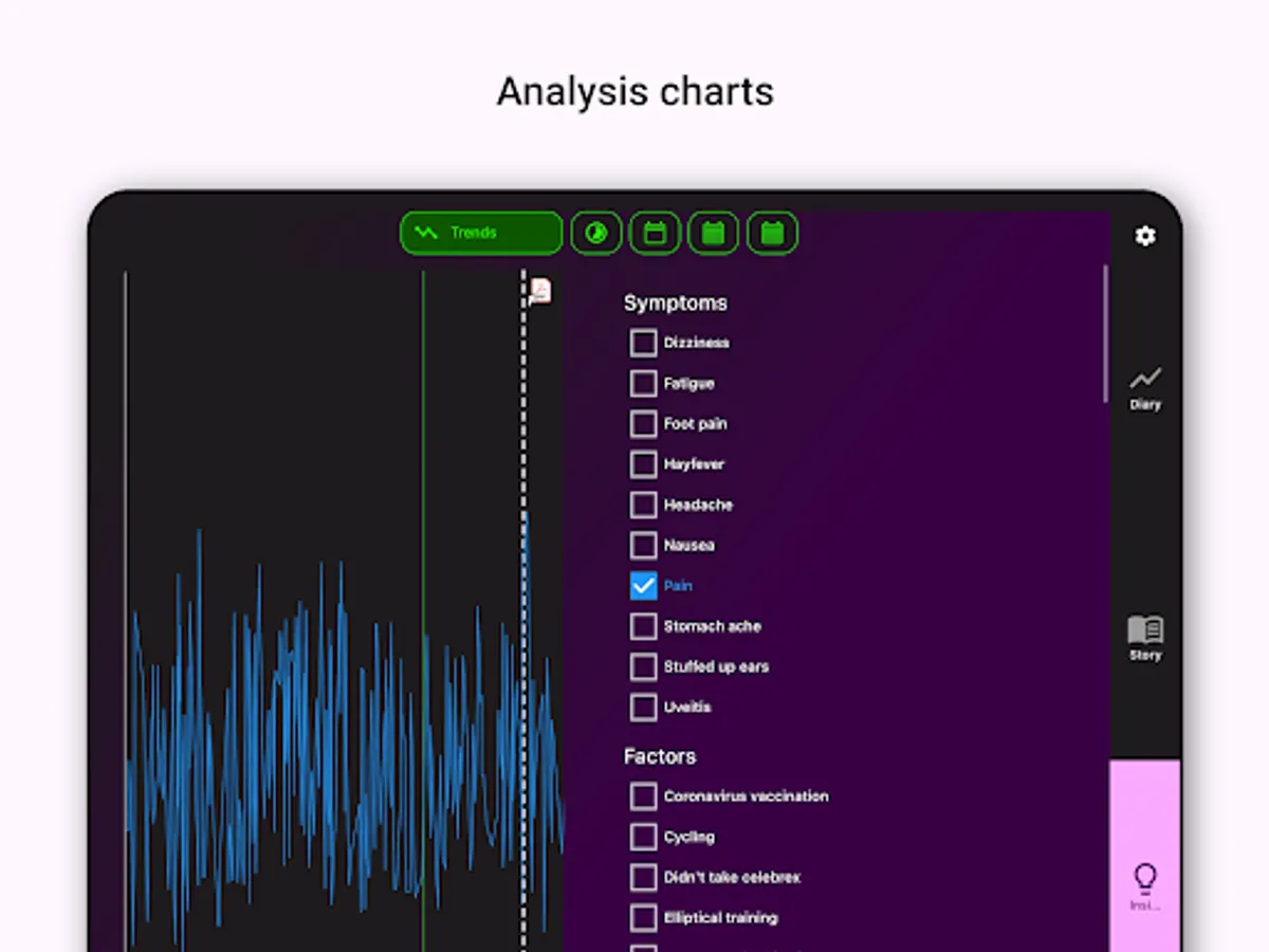 Designed and developed by a disabled entrepreneur who lives with a painful autoimmune condition called axial spondyloarthritis, this is the privacy-focused, ad-free, premium symptom diary that people with chronic health conditions deserve.