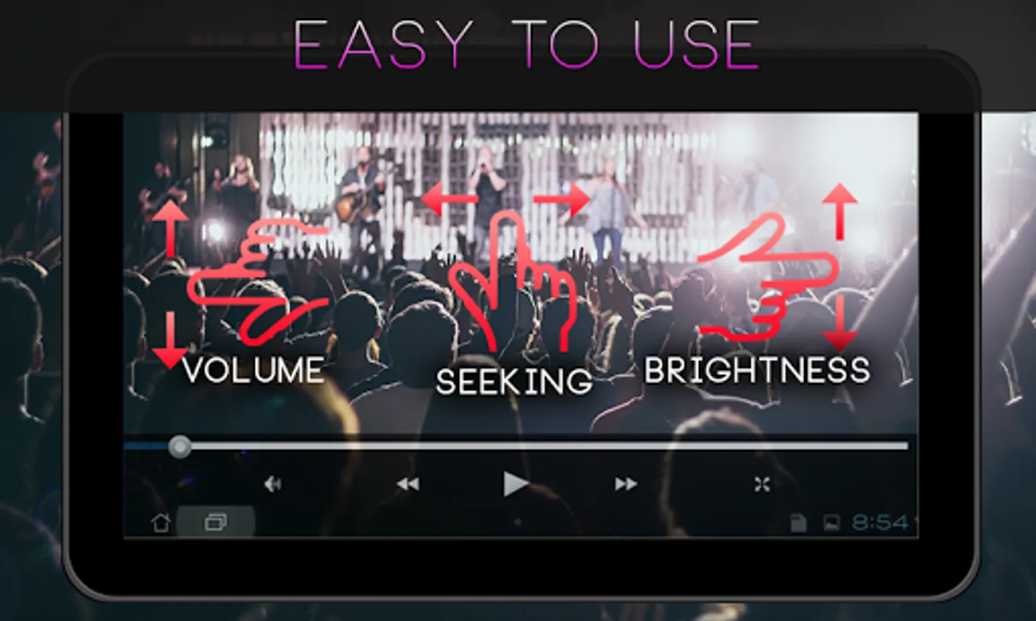 HD video players are very common and even very necessary to play different formats of videos. All video players can not all the video formats and when it comes to the HD quality some other apps start crashing. So this HD video player is one of the best video player to play all video formats with HD quality support. There are so many applications available on the play store to play your HD videos and claiming to be the best HD video player. But our application not only provide you the best HD video player facility but is very unique and different from those hd video players. Easy HD Video Player is very new and unique concept which is very easy to use and the only video player of its kind. It provides you a very smooth and easy player to play your videos automatically.