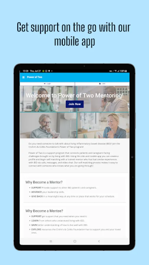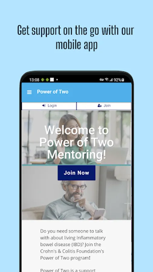 Power of Two is a peer-to-peer support program that connects patients and caregivers living with IBD. Using the app, you’ll self-match and then reach out by phone, video chat, or messaging to a peer mentor who relates to what you’re going through. Power of Two makes it easy to share your questions and experiences, safely and securely, with a trusted peer who understands.
