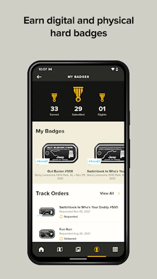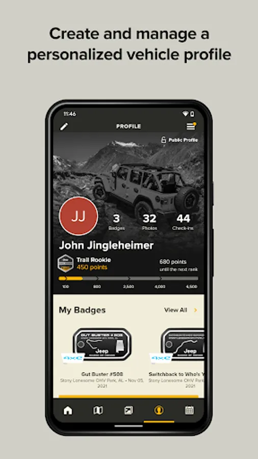▪Earn Trail Points and ranks within the Jeep Badge of Honor community, plus special Hard Badges to put on your Jeep brand vehicle