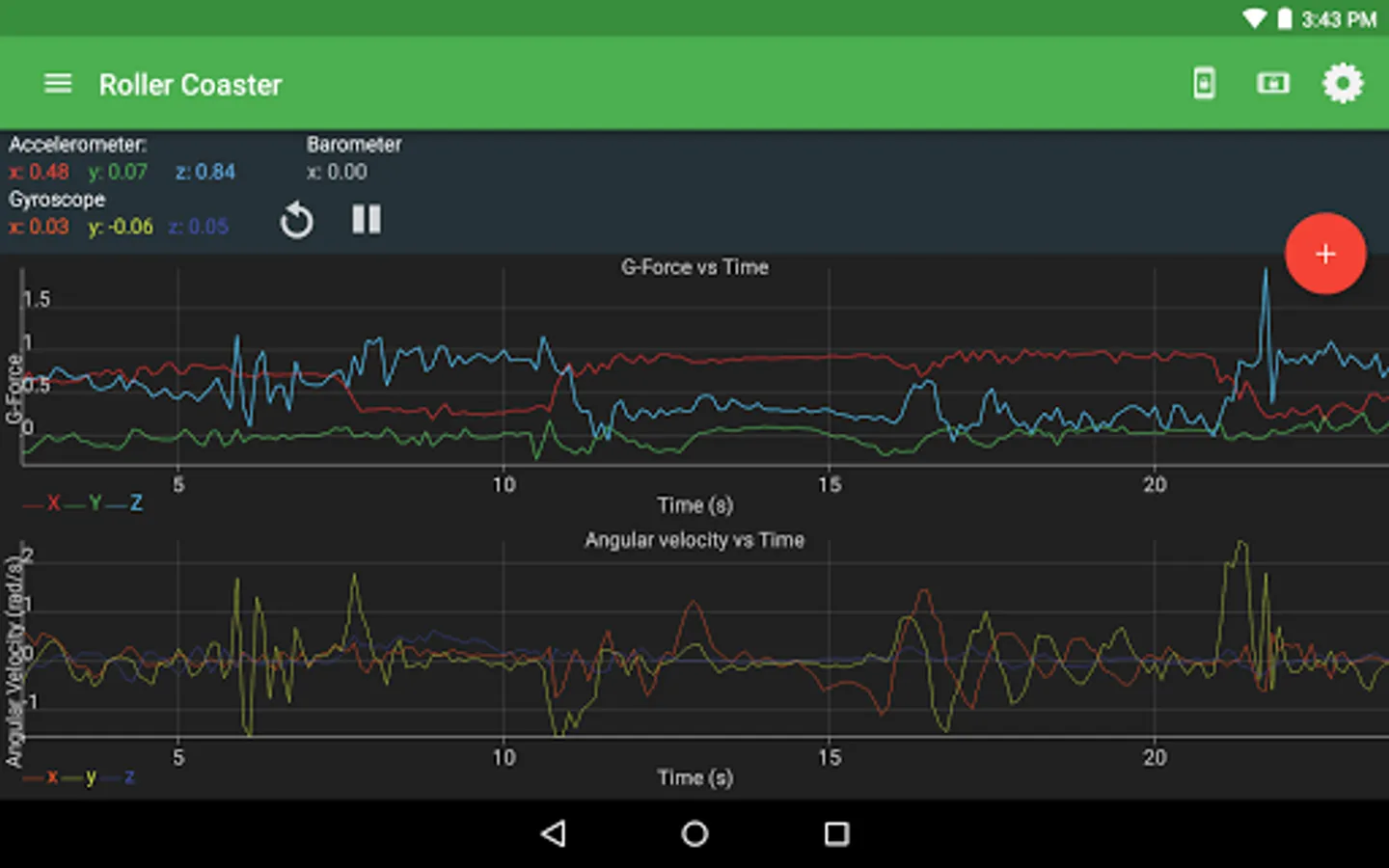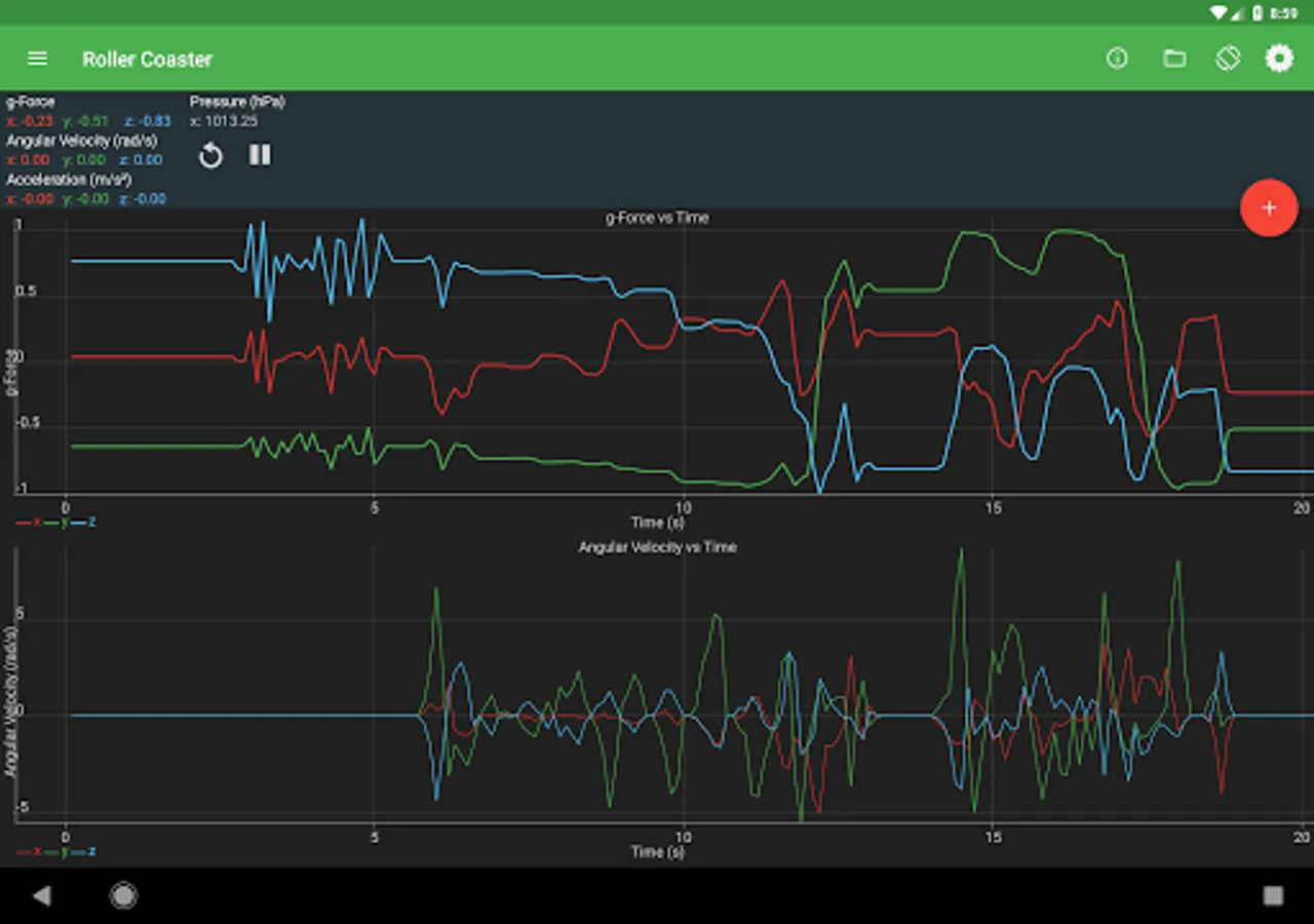 Roller Coaster - G-Force Meter, Linear Accelerometer, Gyroscope, and Barometer