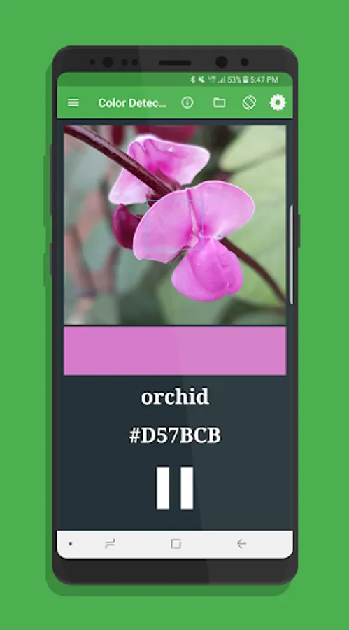 Color Detector - detects HEX colors within a small rectangle area on the screen via the camera.