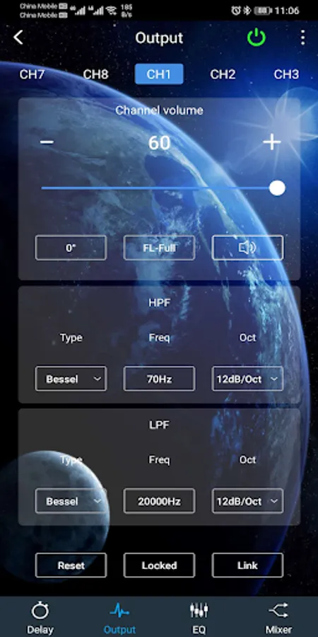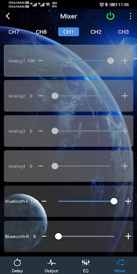 The Nakamichi mobile phone NDS4831A DSP APP connects with NDS4831A by utilizing a wireless bluetooth interface for superior DSP control