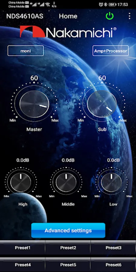 The Nakamichi mobile phone NDS4610AS DSP APP connects with NDS4610AS by utilizing a wireless bluetooth interface for superior DSP control