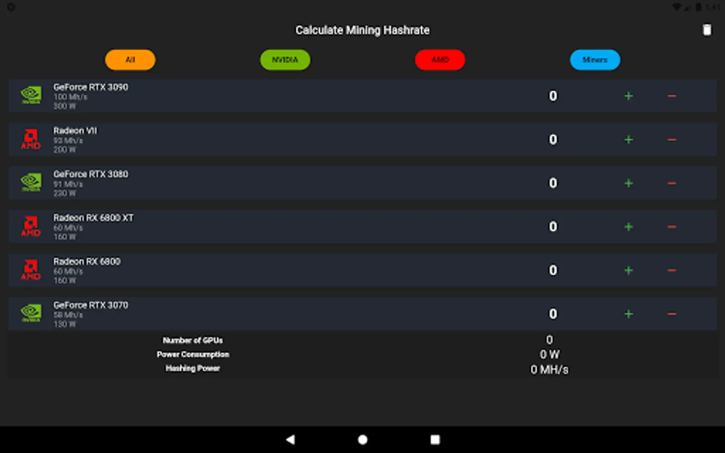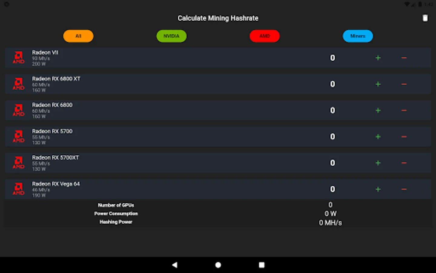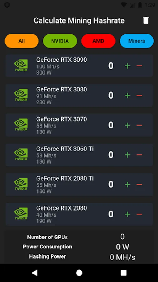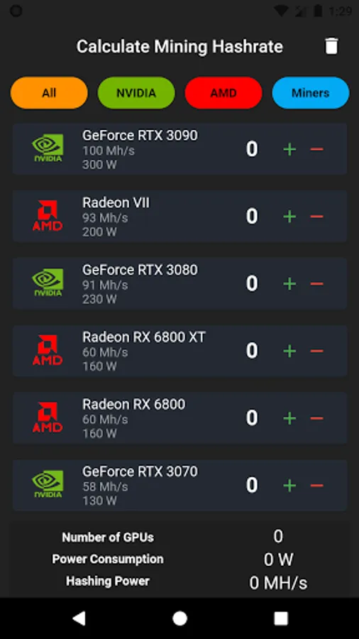 You can easily find what you are looking for in 3 different categories as NVIDIA, AMD and Miners.