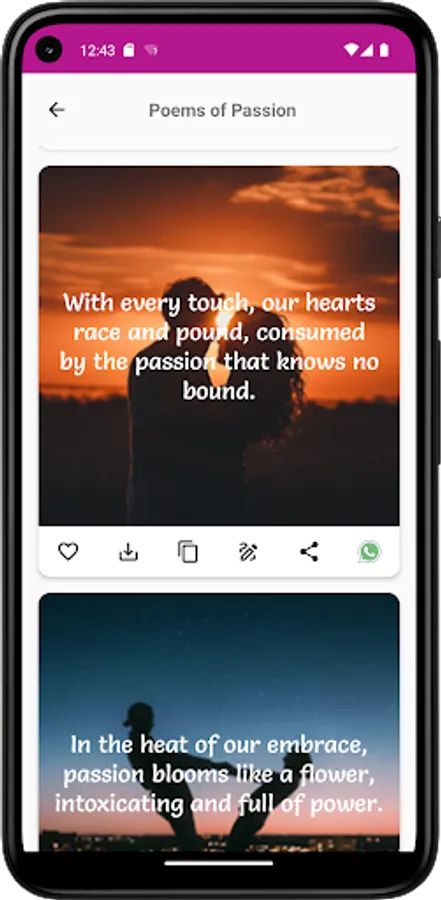 Offline Access: Enjoy uninterrupted access to your favorite poetry, even without an internet connection. Save your most cherished verses to read and share at any time, ensuring that love is always at your fingertips. Whether you're on a romantic getaway or simply enjoying a cozy moment together.