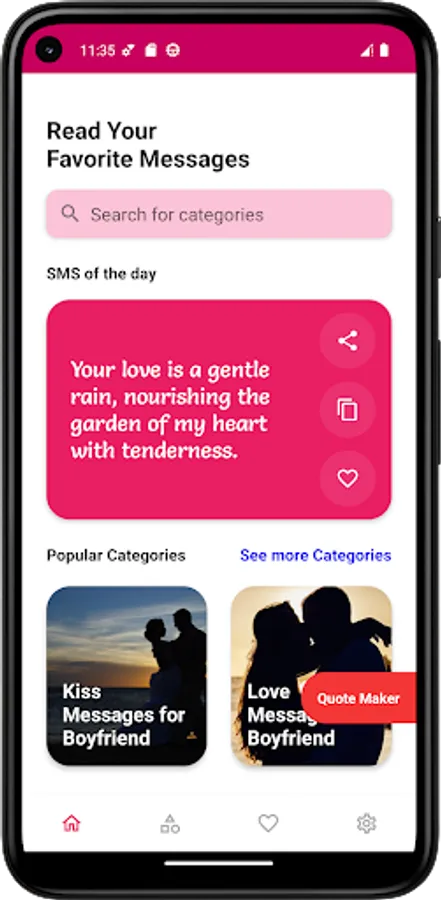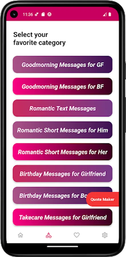 If you're seeking a love quotes app to send the most romantic messages, look no further. Our social app boasts an extensive array of messages, ensuring you'll find the perfect words to convey your heartfelt sentiments. Download for free on your Android device and unlock a world of possibilities.