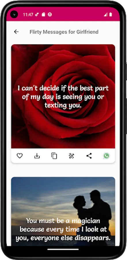 Discover the ultimate collection of Romantic Love Messages and SMS, a social app designed exclusively for Android. With an extraordinary assortment of quotes and messages, expressing your deepest emotions to your loved ones has never been easier.