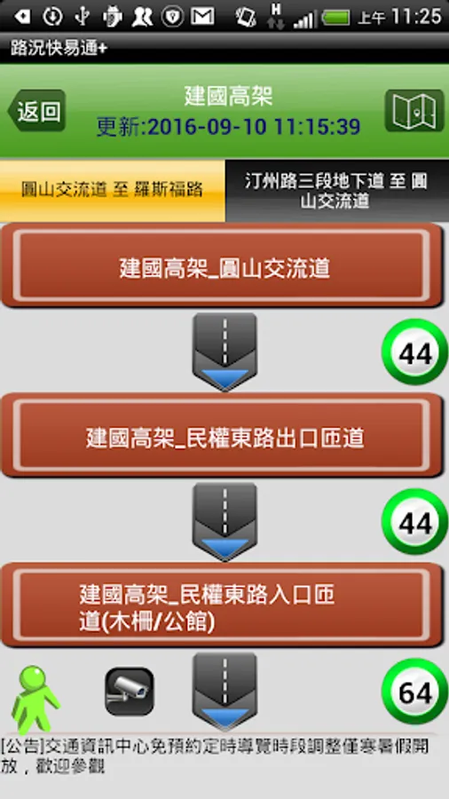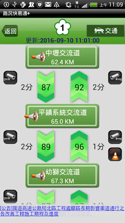 -前方路況壅塞時,提供國道替代道路即時時速與車流影像資訊,讓您決定是否要改走替代道路節省行車時間