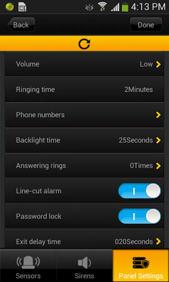 The intuitively designed smanos W100 app interface enables you to effortlessly adjust system settings on the go: arm/disarm, home mode, zone/sensor naming, siren volumes and times, and additional sirens.