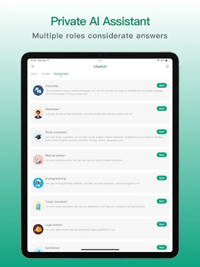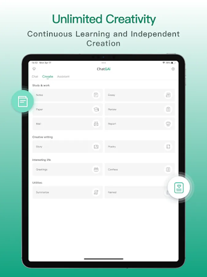 With intuitive and friendly Ai chat, Ai creation, Ai painting assistant, Ai personal assistant and customized Ai roles, no matter what scenario you face, ChatGAi with ChatGPT as the core can provide you with all-round support to meet your needs. Various needs in work and life.
