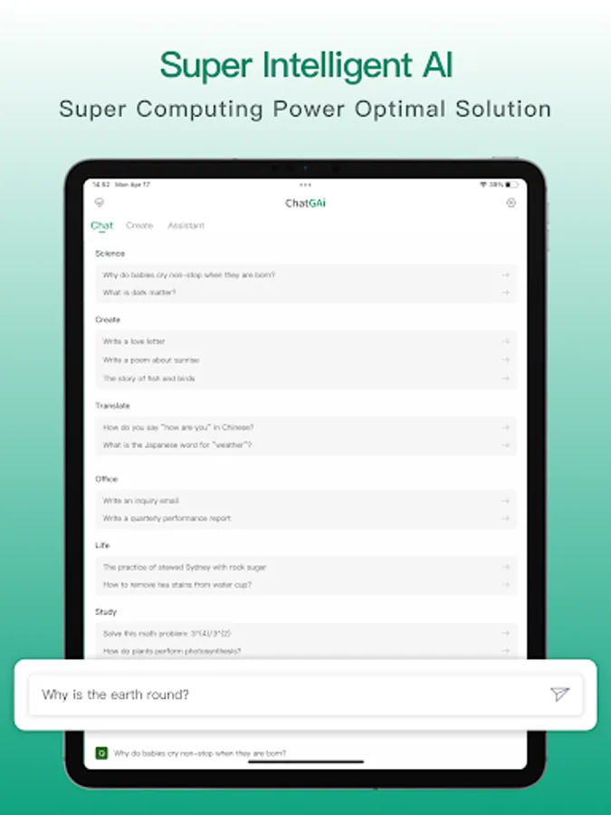 ChatGAi based on ChatGPT API is committed to becoming an indispensable partner in your life. Download ChatGAi immediately and experience the charm of the Chinese version of Chatgpt.