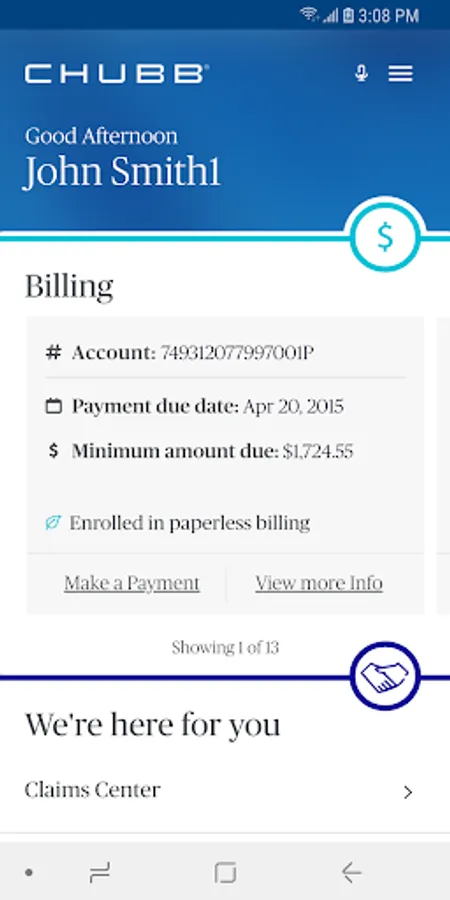 NOTE: To access your Chubb account on this app, your auto policy must be active.