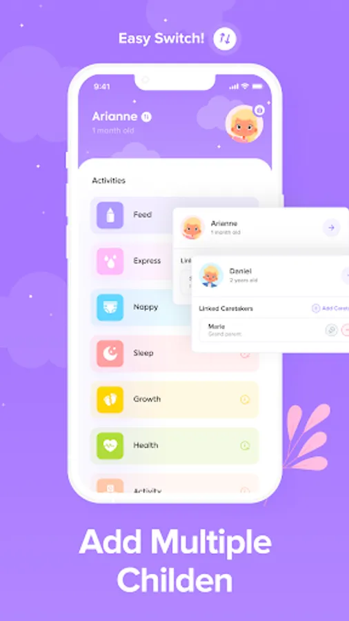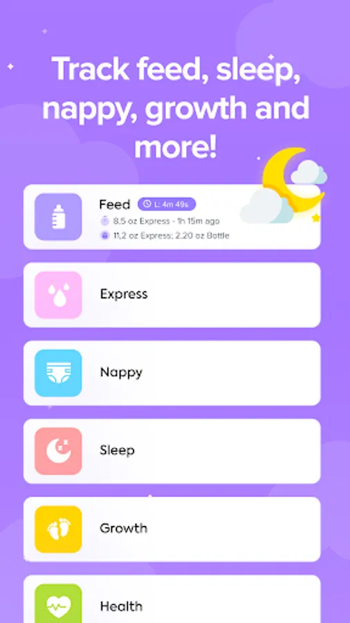 1. Add multiple children and track their activities like feed, express, nappy change, health, growth and so much more.