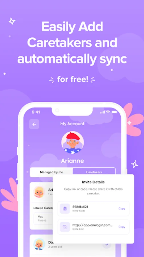 2. Automatically sync data with other caretakers for FREE! ( parents, grandparents, relatives, doctors etc)