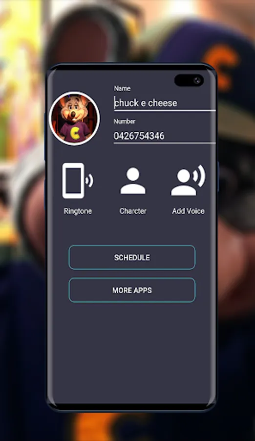 This application is the fake call of chuck e cheese. This app is not official and have nothing to do with the original character mentioned throughout the app.