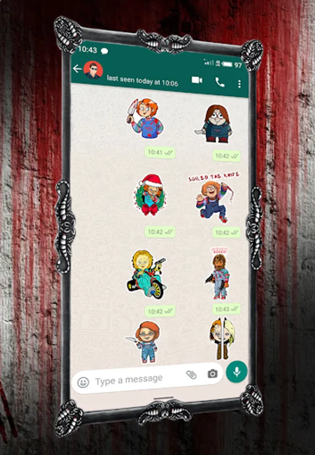 Chucky stickers for whatsapp make it possible to move to a new level of communication. Now you can surprise your friends from a distance. The app will appeal to those who like fun communication and often correspond with friends. Make your conversations more fun with wasticker chucky. Horror doll stickers are a fun way to express the feelings of the person we are talking to.