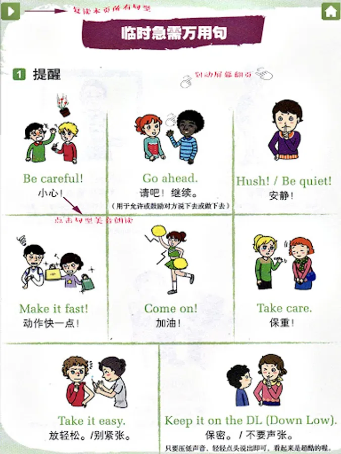 4 EasyToUse: Click on the sentence pattern and dialogue to automatically read the sound, swipe the screen to turn the page