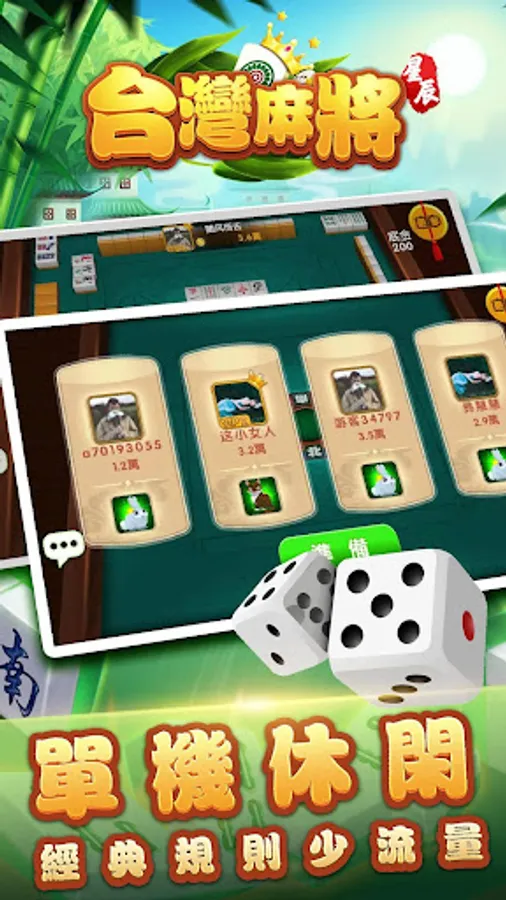 "Taiwan Mahjong Stand-Alone Edition" is the most classic 16-card gameplay in Taiwan Mahjong, so that Ma You can find the familiar taste of Taiwanese hometown! Deeply restore Taiwan Mahjong classic gameplay. Taiwan Mahjong has a long history, is easy to learn, and has a variety of fun and fun. It can be touched, eaten, and touched. The rules of the Big Four, the Big Three, and the Eight Immortals cross the sea. All good luck is based on your own luck! You can have fun anywhere, anytime.