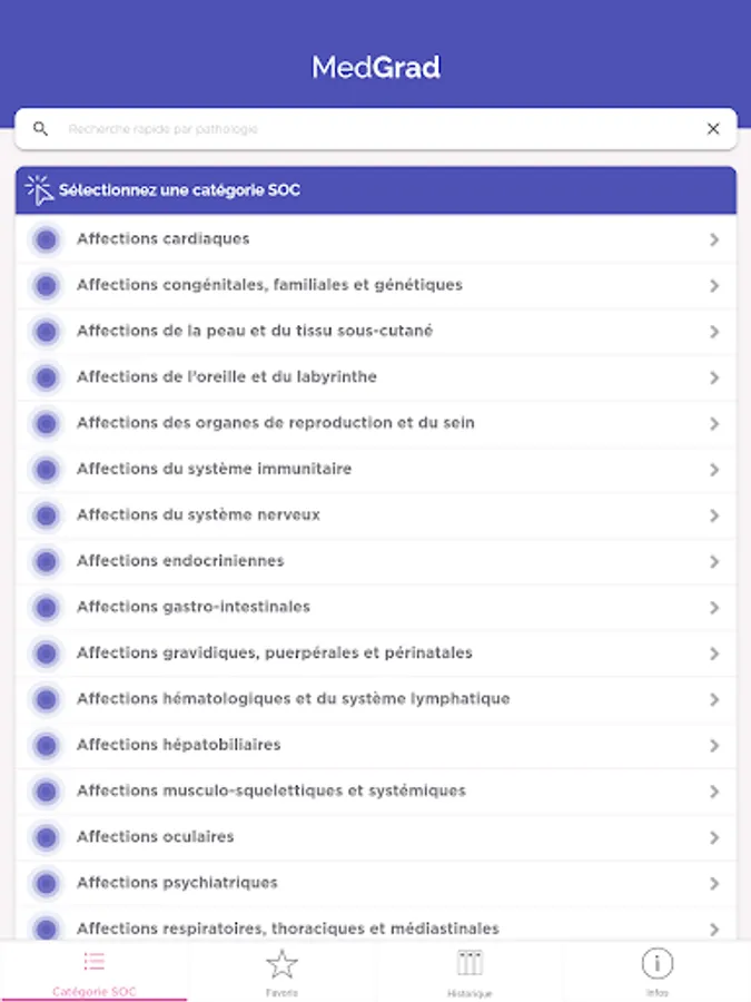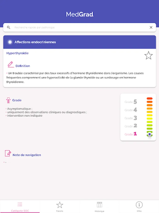 MedGrad is an app developed by CHUGAI PHARMA France. An application allowing health professionals easy and fast access to the CTCAE v5.0 classification fully translated into French.