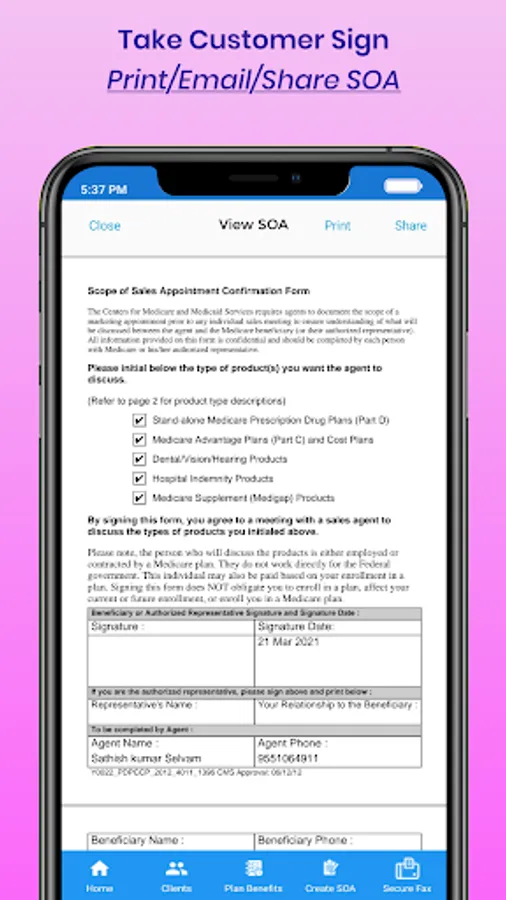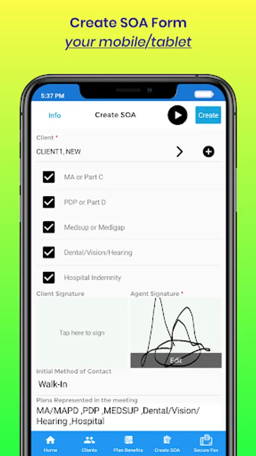 Create SOA from your mobile/tablet and get the client's signature from the touchscreen. EmailPrintShare the SOA with your clients and access it any time