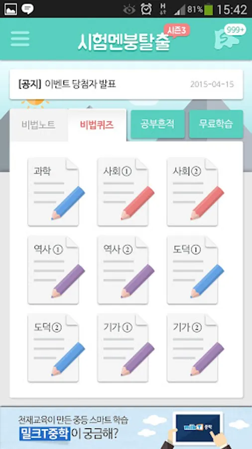 Test Mental Escape Season 3, with upgraded contents and services, is a free study application created for middle school students.