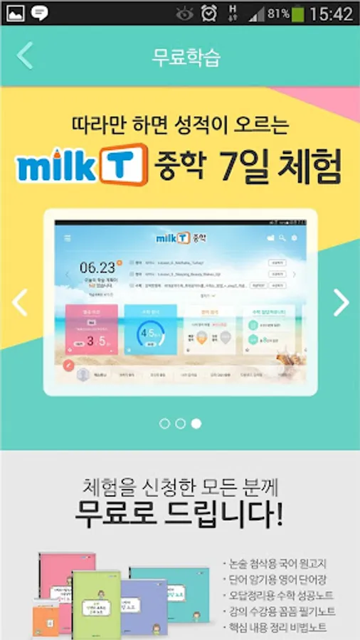 From Milk T Middle School teachers handwritten key contents for each subject [Secret Note] and [Secret Quiz] where core concepts are automatically memorized through quizzes, and [Study Traces] to share study records and school life with friends!