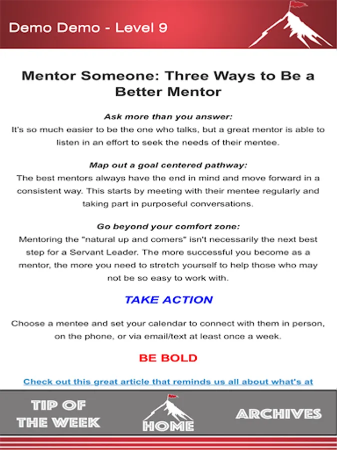 While components of this app (Servant Leadership, Tip of the Week and Archives) are available for anyone, it has been designed primarily for No Excuses Leadership Academy graduates. Academy grads will receive logins that grant access to masterclass content helping them to refine their work around the Nine Bold Choices among a community of leaders who are like-minded.