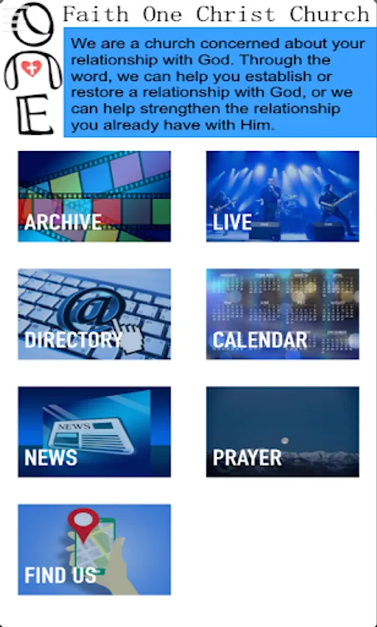 Use this app to stay connected with One Faith One Christ church, while you are worshipping at home, with your friends, no matter where you are or who you're with. Watch the live stream, as well as access previous sermons anytime from anywhere and never miss a message. You can check out our calendar and newsletter, and stay in the know of what's happening at your church. Submit a prayer request anytime; and have access to Bible study notes and resources.