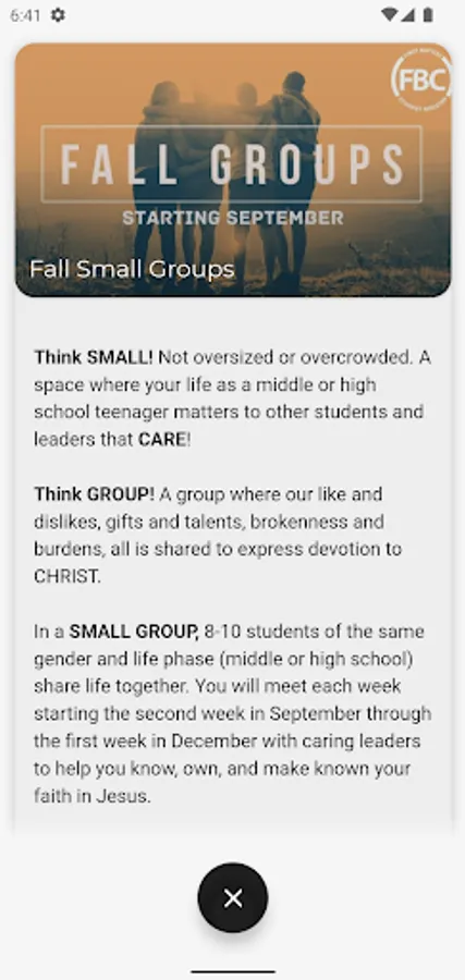 The FBCKM Student app helps you to know what is happening with the FBCKM Student Ministry. With this app, you are able to follow the notes from messages, keep up to date with the Student Ministry schedule of activities and events through notifications, reminders, and calendar. Download the app today and get involved with FBCKM Student Ministry. For more information: https://www.fbckm.com/