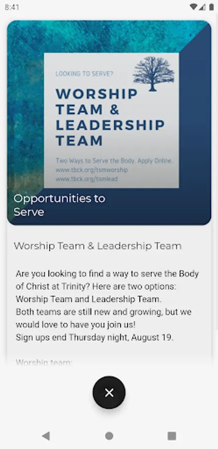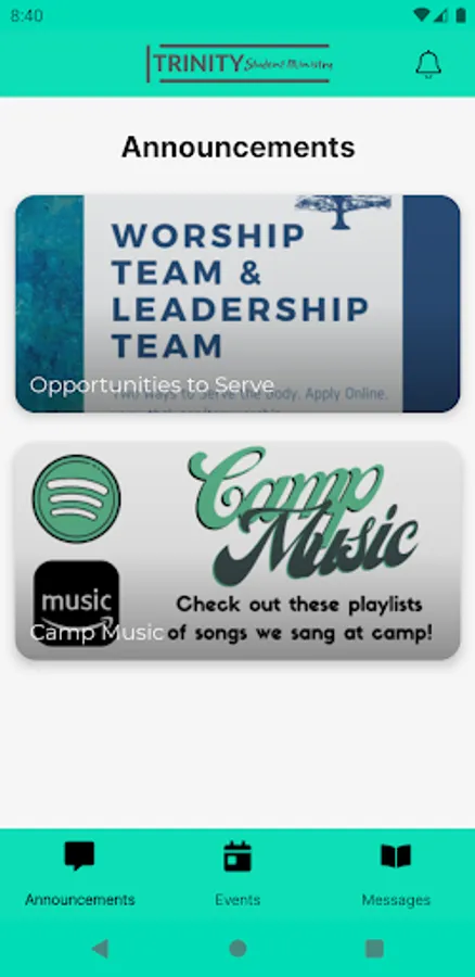 The Trinity SM app will help keep you informed with what is happening at Trinity Student Ministry Kerrville. With this app you will be able to get notes for our teaching times, stay up to date with TSM activities and events through notifications, reminders, and calendar. Download the app today and get connected with Trinity Student Ministry. Trinity Students are a part of Trinity Baptist Church Kerrville if you would like more information about us you can check out our webpage at www.tbck.org.