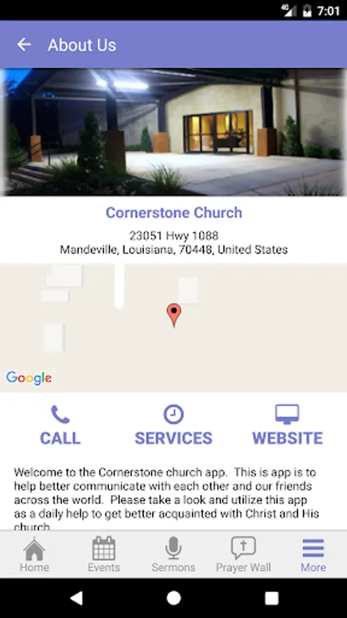The Cornerstone Church App lets you stay up to date with sermons, events, blogs, videos and more from Cornerstone Church in Mandeville, Louisiana and Pastor Doug Gilford. The best part is that it is all in one place! The palm of your hand.