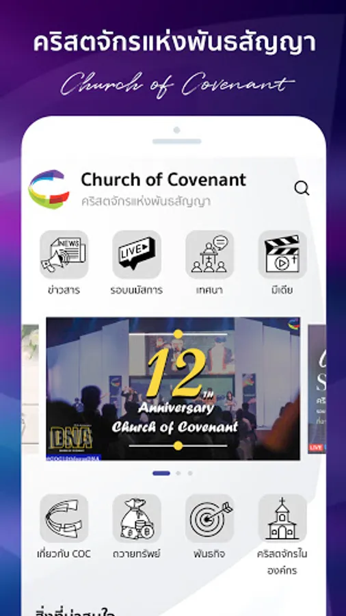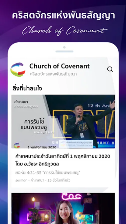 Welcome to Church of Covenant application. Keep up with our latest contents all in your hands.