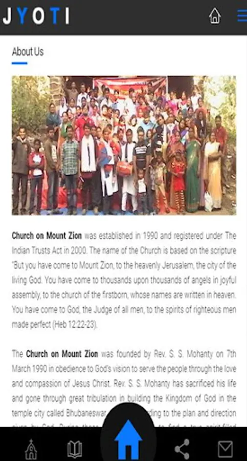 Church on Mount Zion was established in 1990 and registered under The Indian Trusts Act in 2000.