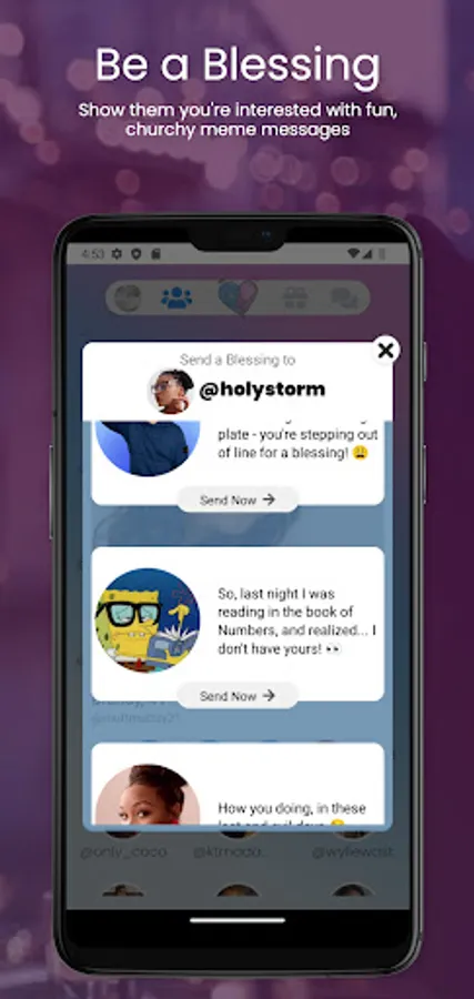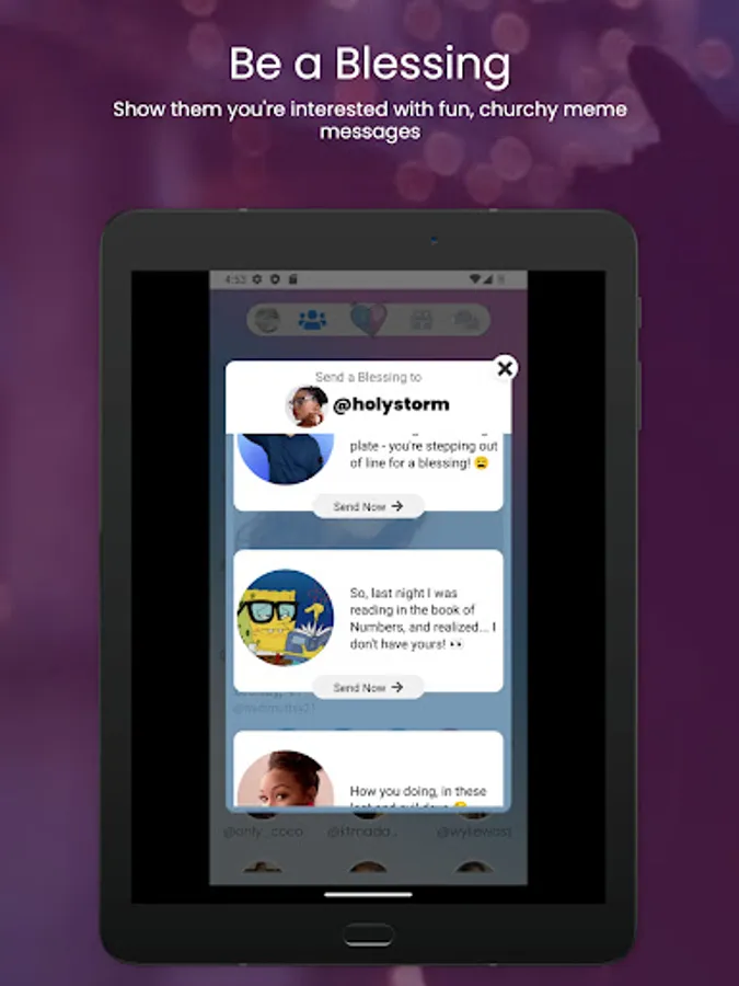 - Send Blessings - fun, churchy "meme" messages you can bless anyone with to show your interest