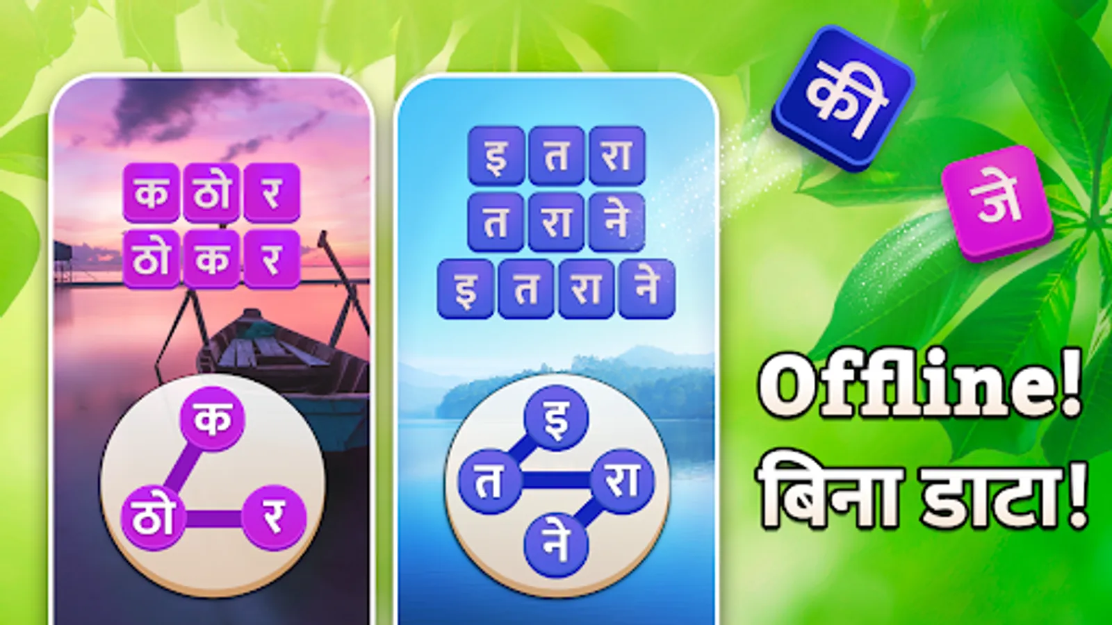 अक्षरों और मात्राओं को सही क्रम में जोड़ कर शब्द पहचानें. खेल कर पहेली का हल ढूंढे! नए देशी खेल खेले और इनाम जीतें. खेल-खेल में अपनी सोच और शब्दावली बेहतर बनाएँ!