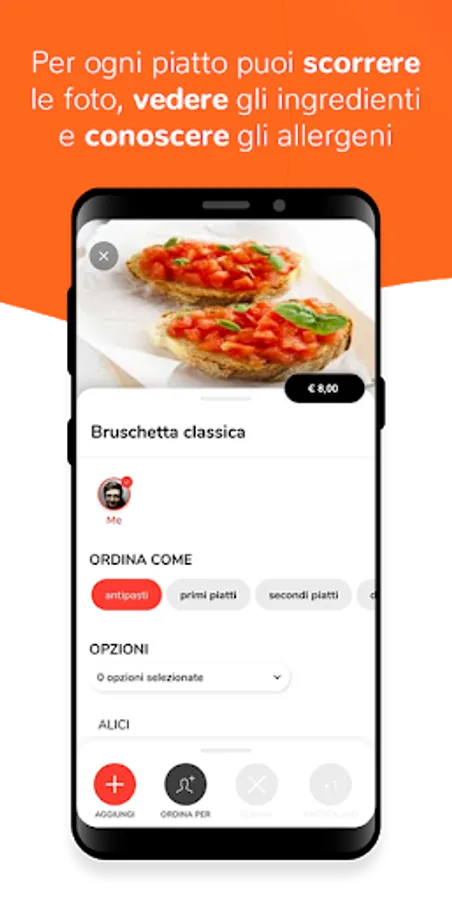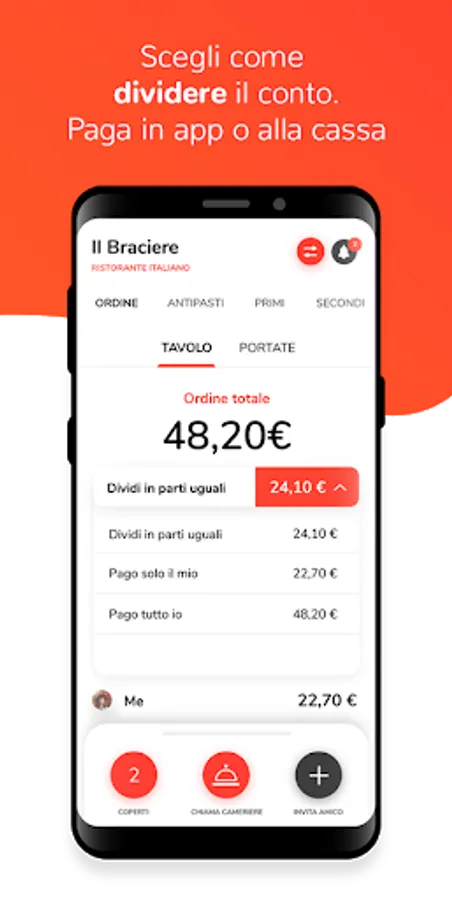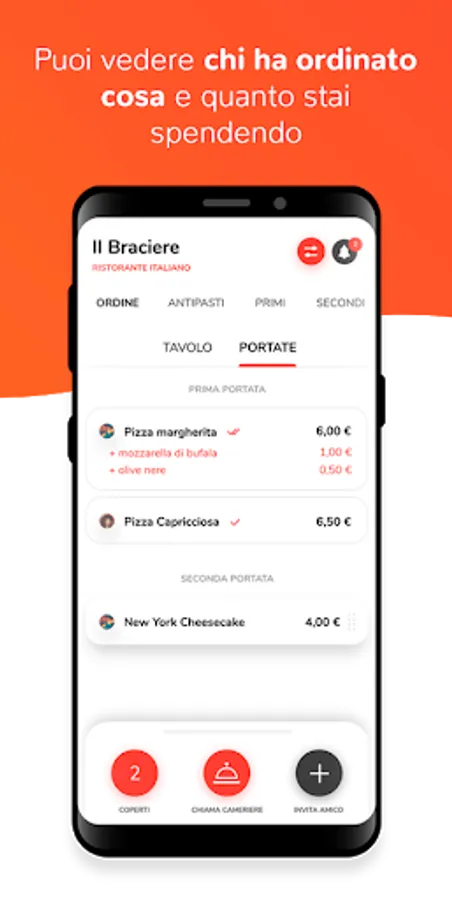 At any time you can view the dishes ordered by you and other diners sitting at your table. "I take carbonara", "I want it too", "I add a beer".