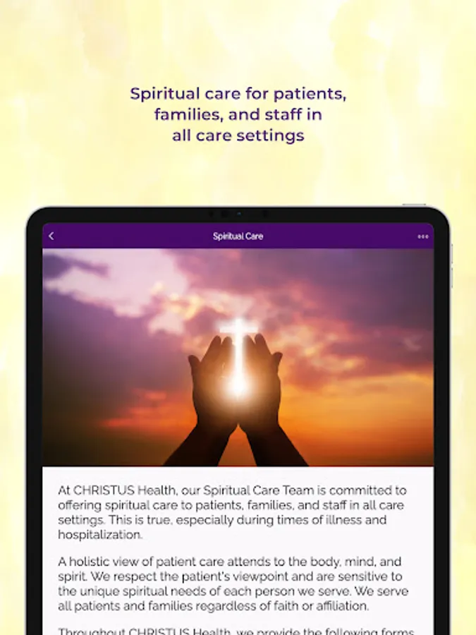 This is a mobile application for the Mission Integration department at CHRISTUS Health. This department enhances the understanding and commitment to the Catholic, faith-based tradition and values from which the healing ministry originated and in which it continues.