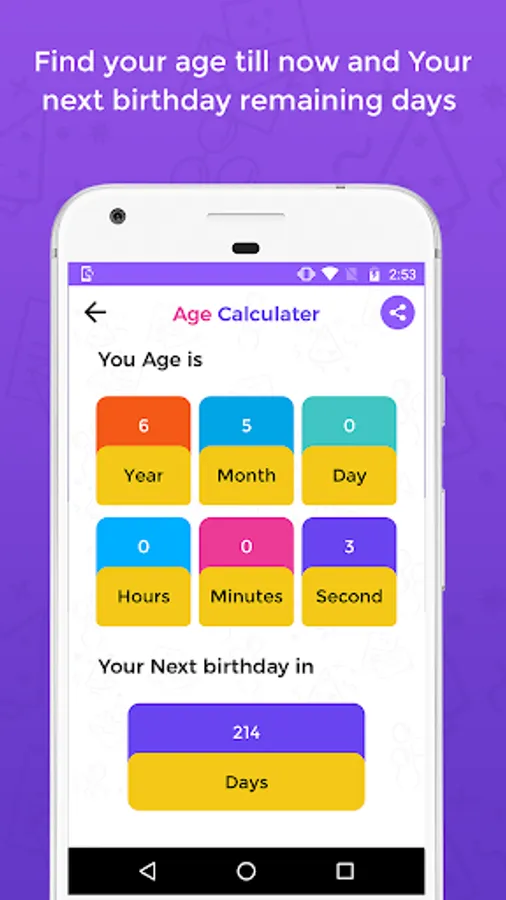 Now, It's hassle free to find your age, how many days you are living and remaining days until your next birthday.