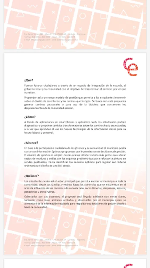 Through applications in smartphones and web applications, students diagnose and propose transformative changes on the paths to their schools; At the same time they learn the use of new information technologies that are key for their work and personal future.
