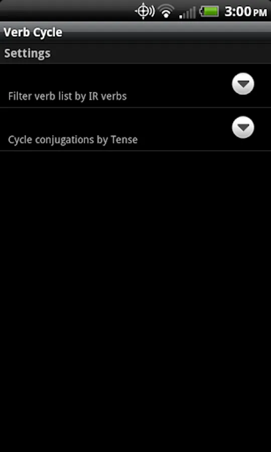 With each correct response, Verb Cycle automatically "cycles" through each pronoun, tense and verb, depending on your preferences. You can configure Verb Cycle to cycle through all the tenses for one verb or to cycle through all of the verbs with the same tense. For example, to practice conjugating verbs in the "pretérito imperfeito" tense, Verb Cycle will skip to the next verb in the list ("cycling") and keep the tense the same. Or, you can choose to practice conjugating all tenses for a single verb by setting your preferences to Cycle by Tense.