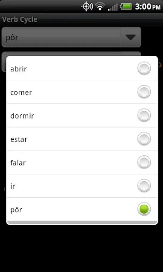 The free version of Verb Cycle Português comes with seven verbs and their conjugations for all 20 tenses. Optional Verb Packs are available for purchase that each contain over 30 verbs.