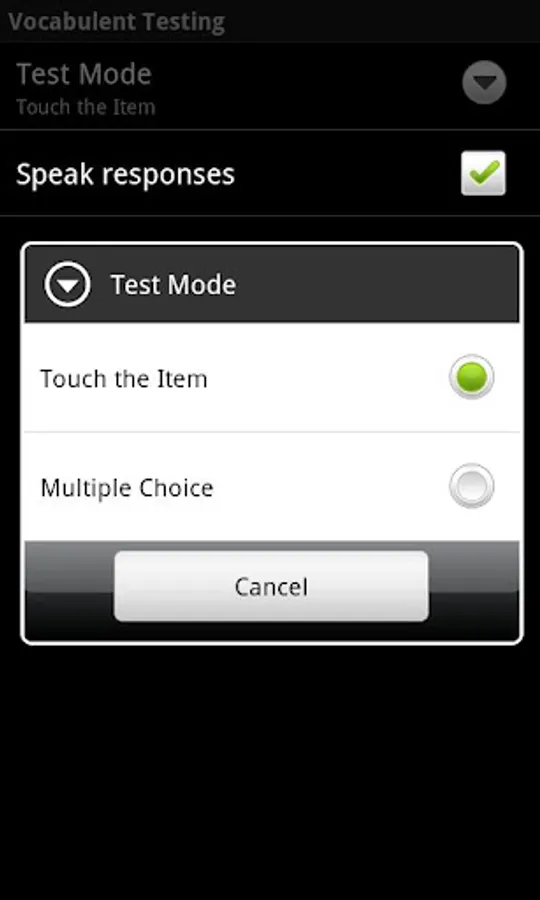 Choose "Speak responses," and Vocabulent will pronounce the names and descriptions of the objects in the scene. (*requires TTS)