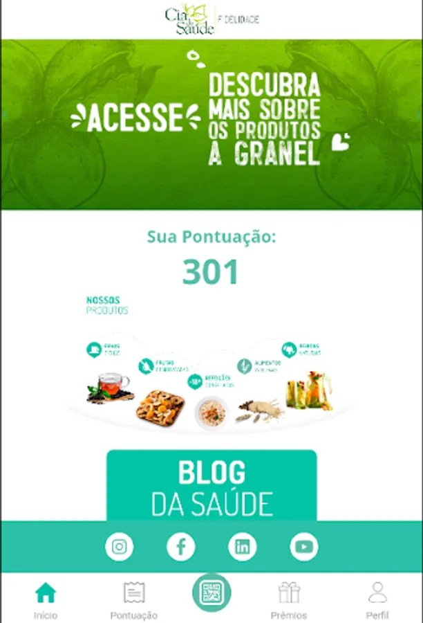 With the Cia da Saúde loyalty app you demonstrate your loyalty for the establishment by accumulating points and exchanging for prizes and benefits by reading the Qr Code offered by when buying at the establishment!