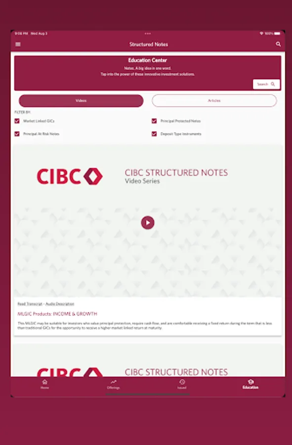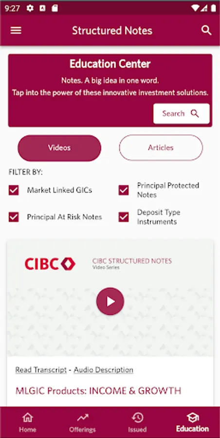 • Access the Education Centre with videos and articles to help you understand Structured Notes and Market-Linked GICs