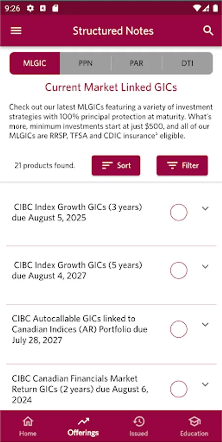 This app allows you to access the latest and most popular CIBC Structured Notes, including Principal at Risk Notes, Principal Protected Notes and Market-Linked GICs and so much more.