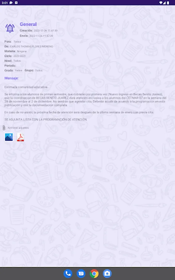 With this application you will be able to check your schedules, grades, notices, homework, exam calendar, registration, change your password, among others. The application is aimed at parents and students, teachers can also use the Cbta86 App although it is recommended that they use the web system since it has more functions of the teaching staff. The Cbta86 App will continue to grow and little by little it will adapt new modules and functions.