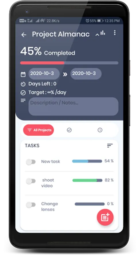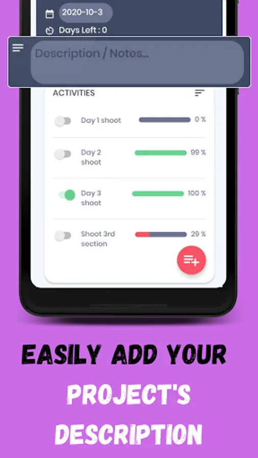 Project Progress Tracker is a Project Management app that lets you add projects, tasks, and Activities and track progress. You can easily and simply add delete manage!
