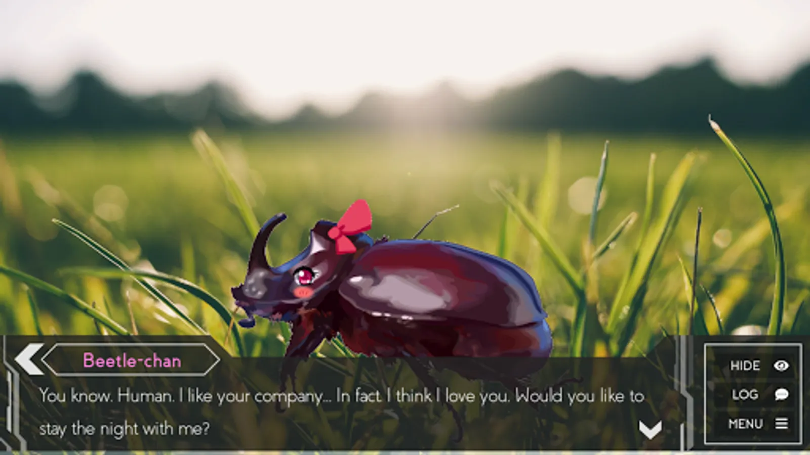 You are Hideki, a shy boy that has troubles meeting new girls. Your best friend will take you to a party organized by the popular Osada Rino. In the pary you will meet strange people, insects, and your childhood friend.